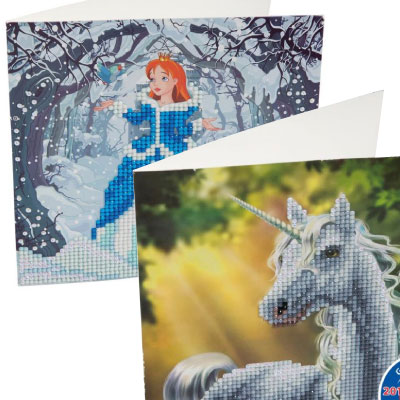 Het gaat om diamond paintings van kleinere formaten of om leuke kaarten.